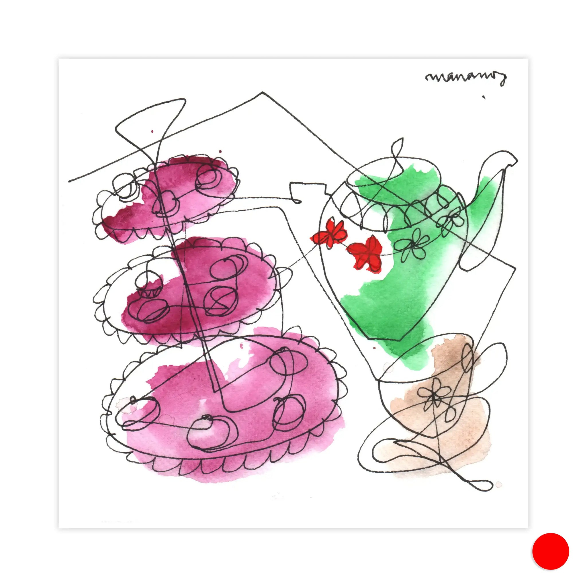 Materials: Pen and watercolor on paper