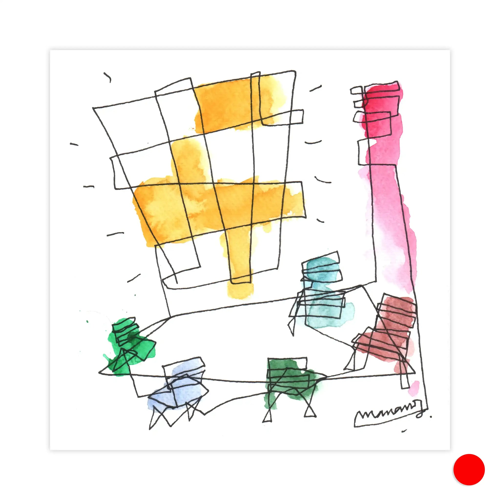 Mariano Martín is a Spanish artist, designer, and architect whose work blurs the line between disciplines. Mariano draws daily—capturing the poetry of everyday life through lines and color. Each drawing is an intuitive translation of feeling, gesture, sound, or movement—revealing a world just beneath the surface.