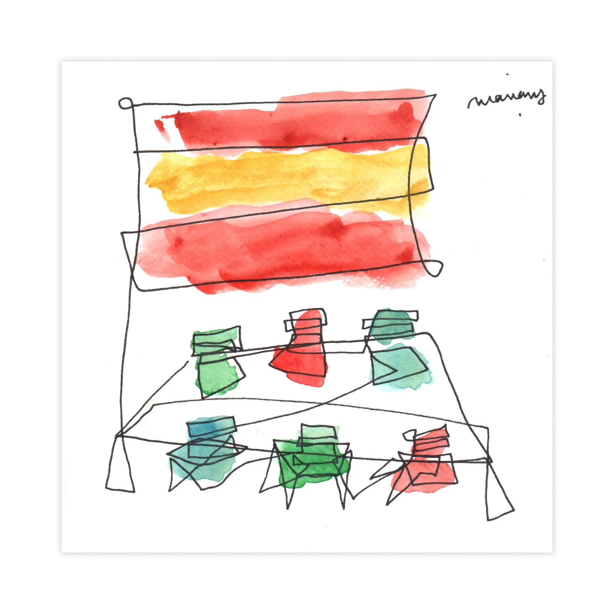 Materials: Pen and watercolor on paper