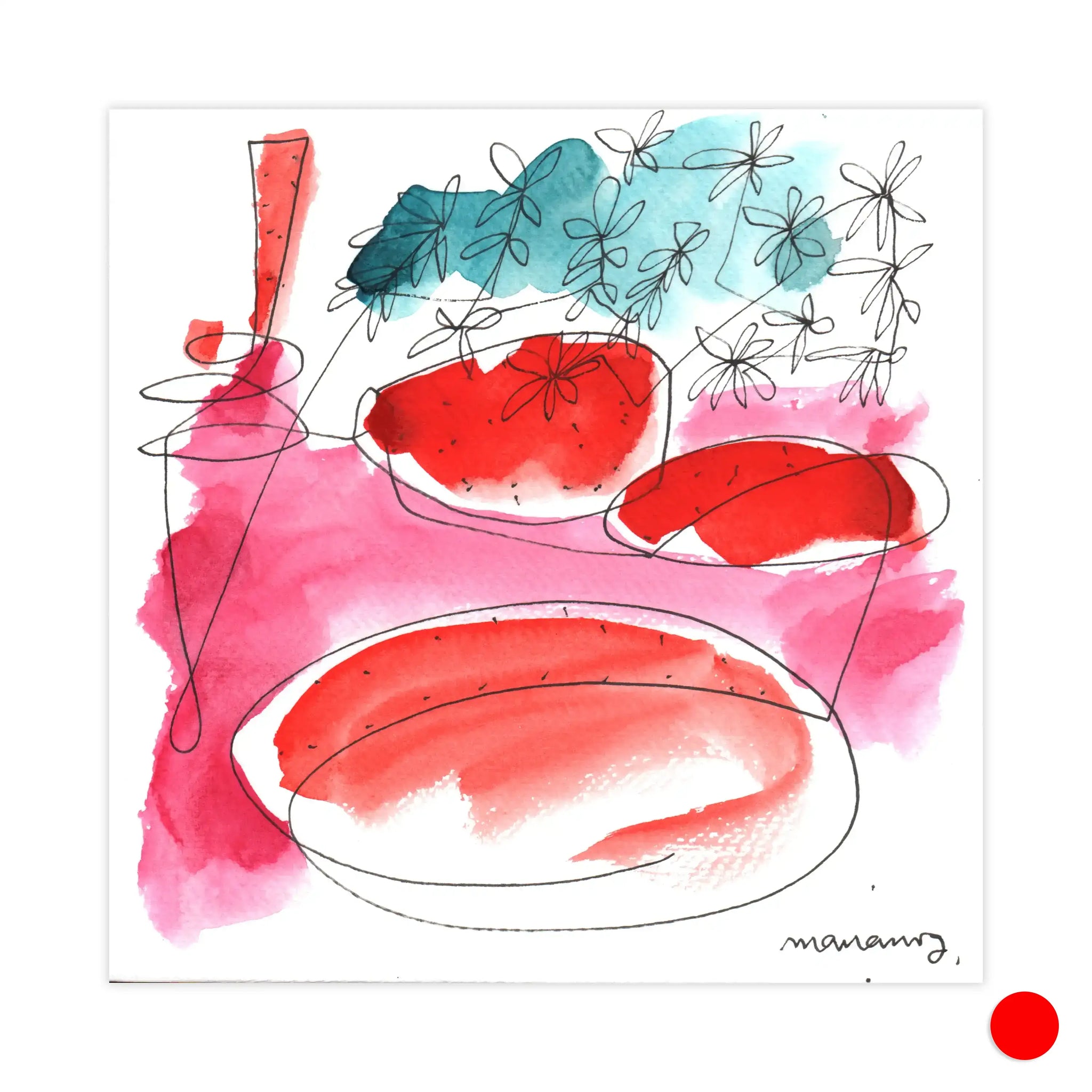 Materials: Pen and watercolor on paper